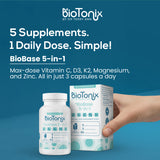 BioBase was created to simplify supplementation by combining five essential products into one daily dose, so you can focus on your health, not on juggling multiple supplements.